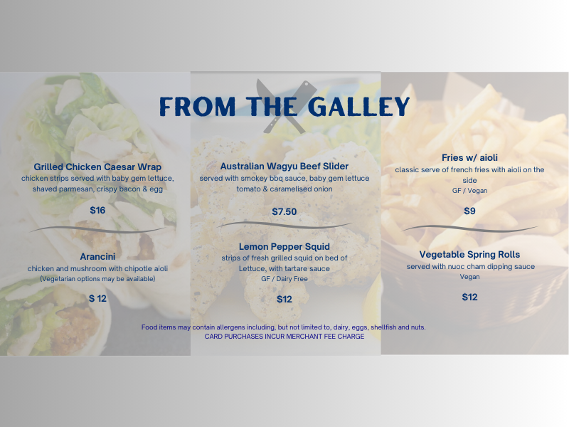 * Do not leave bags or other personal items on any seating or in anyway unattended while on-board the vessel. All Event Cruises Pty Ltd accepts no liability for any lost, damaged or stolen personal items.