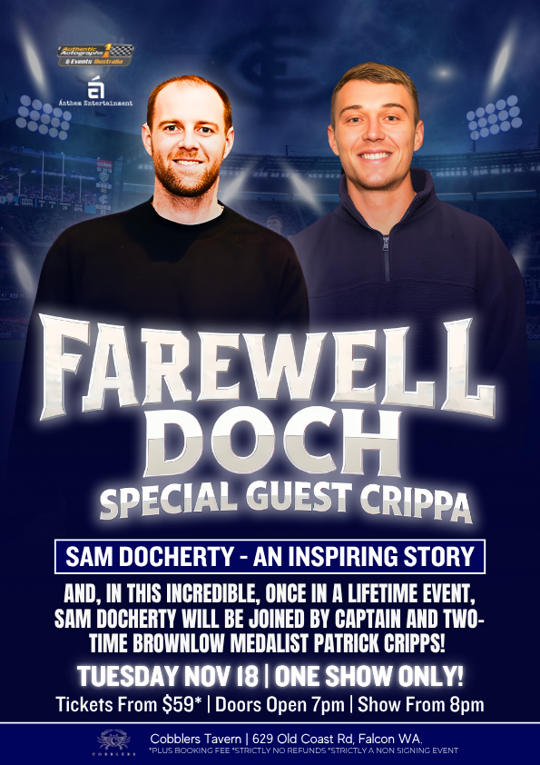 Blues Fans In Perth! Your chance to Farewell Sam Docherty LIVE at Cobblers Tavern, Tuesday November 18! Alongside Special Guest Patrick Cripps!