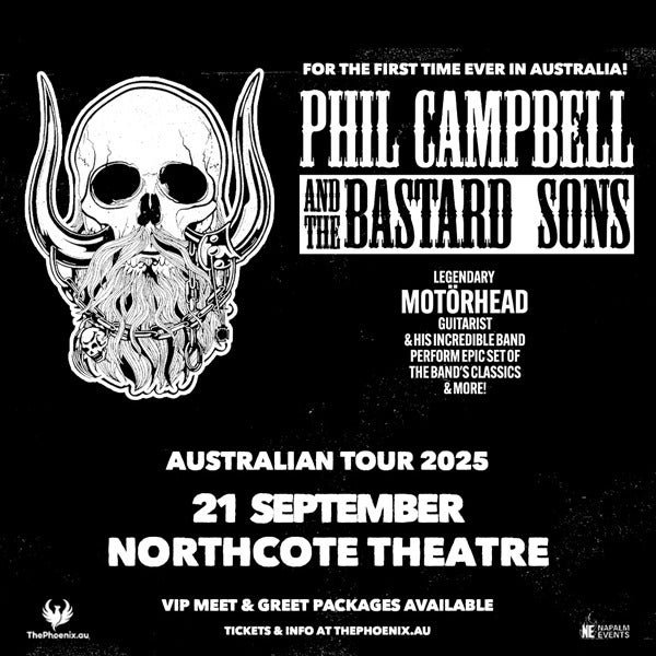 For 32 years PHIL CAMPBELL tore up stages around the world and rocked millions of devoted fans as guitarist and one third of Motörhead, perhaps the single most iconic and fabled band in rock music history. He now returns with his own much lauded band, PHIL CAMPBELL & THE BASTARD SONS, which appropriately features his 3 sons - Todd, Tyla and Dane - who are proof positive that genetics play a major role in musical genius.