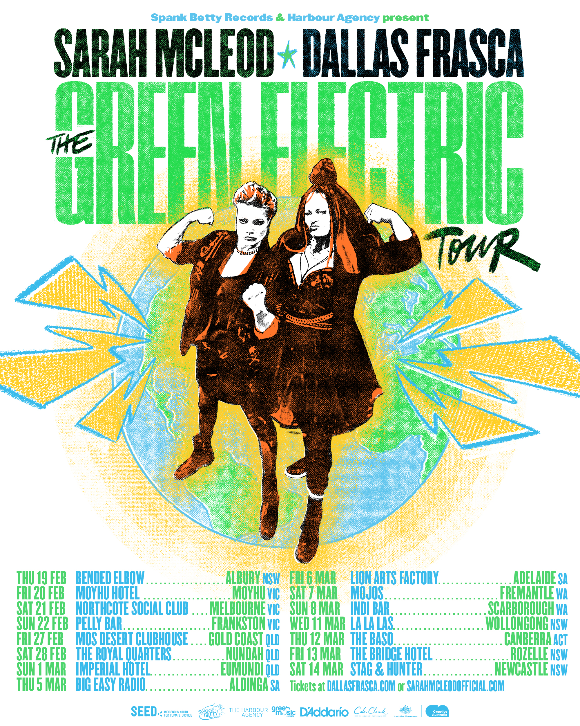Taking this tour around Australia, from Fremantle to Brisbane, the GREEN ELECTRIC TOUR will deliver on powerful original hits, reimagined rock bangers and new collaborations as McLeod and Frasca come together backed by two thunderous drummers for this one-of-a-kind live music experience.