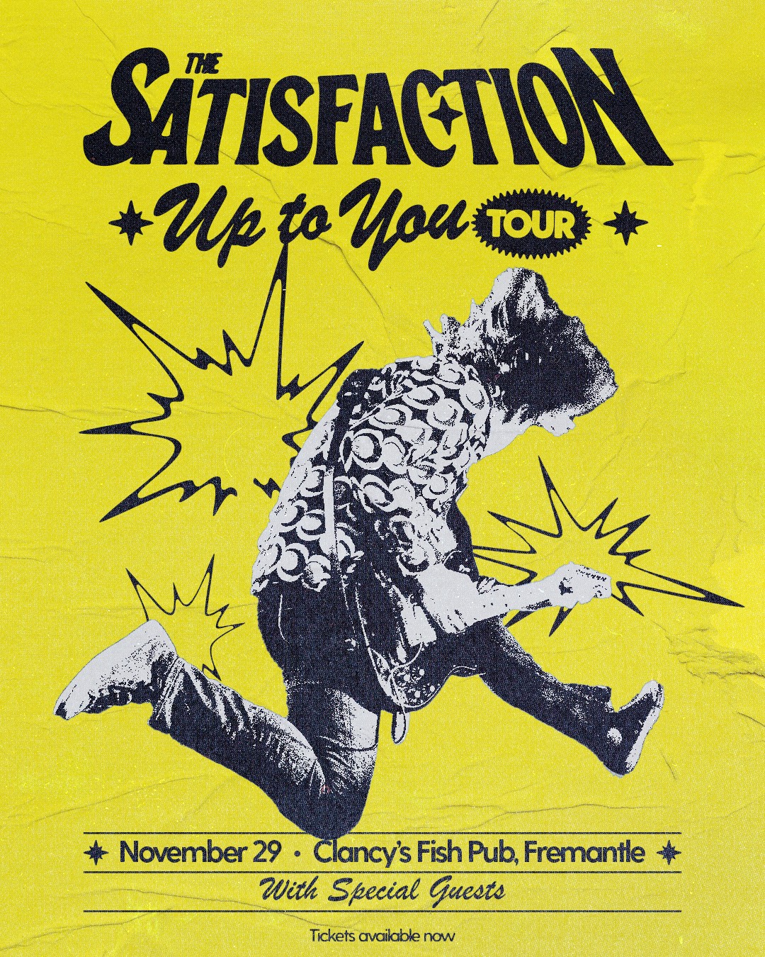 Hot off opening for the likes of You Am I, The Southern River Band and British India, The Satisfaction celebrate the launch of their brand new single, Up To You with an 8 date party to see them through to 2026. Featuring special guests. All are invited, no funny business!