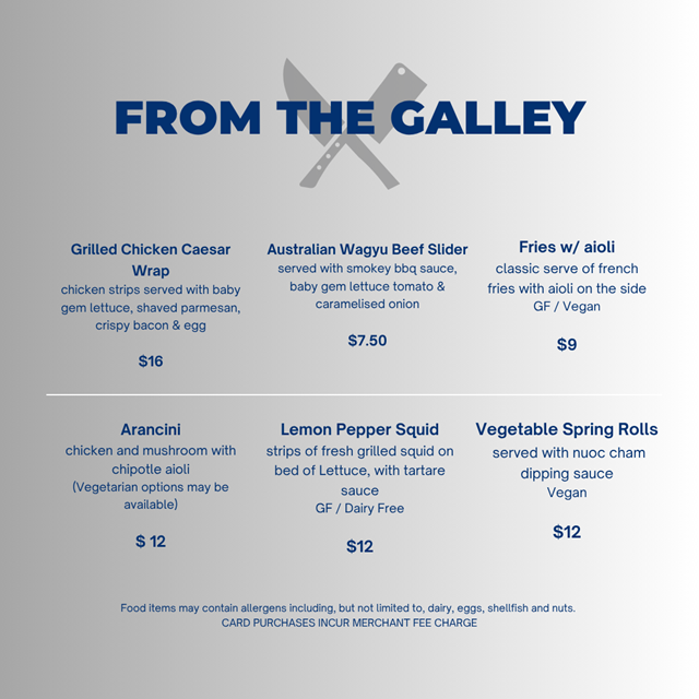 Delicious Snacks Available for purchase from our on-board chef (menu below)